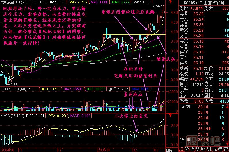 一般情況下,莊家總是使用跌破壓后盤整的方式來消磨散戶的持股意志的,等散戶不耐煎熬而拋出股票后,這股價就算洗盤結(jié)束了,而觀察成交量是否出現(xiàn)芝麻點,則是判斷洗盤是否近尾聲的標(biāo)志之一,只有洗盤完畢后股價重新放量重返五線之上,并突破前頭部,這就算把壓瓦解了,此時往往形成了壓轉(zhuǎn)托的形態(tài),這個壓轉(zhuǎn)托區(qū)間將成為未來行情的支撐區(qū)域,股價以此為基礎(chǔ)再發(fā)動一波行情。