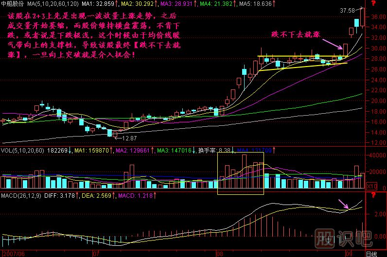 一般情況下,只要暖氣帶是向上的,則股價(jià)容易得到暖氣帶的支撐而最終向上突破,這就是跌不下去就漲!
