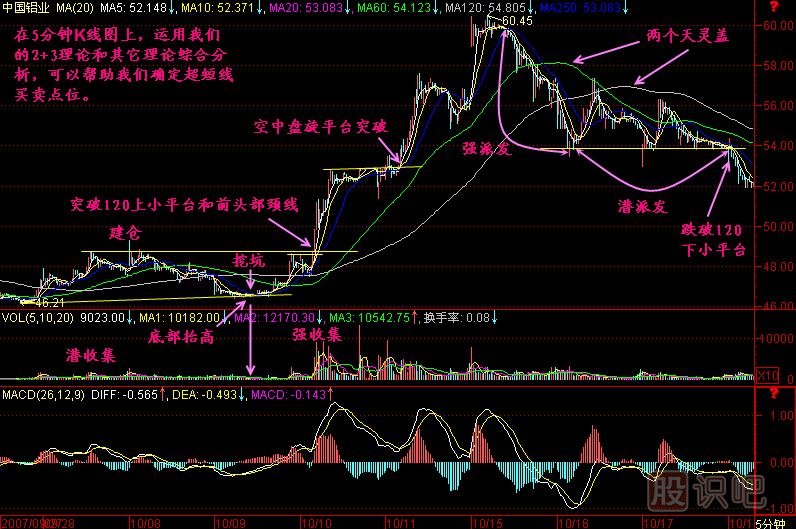 小結(jié):我們在俱樂部學(xué)習(xí)到的絕大部分單一技術(shù),不動在日K線圖上適用,也適用于其它周期,比如5分鐘K線圖上。雖然5分鐘K線圖變化較快,但使用我們的2+3均線理論和其它各種單一技術(shù)分析,照樣有建倉、洗盤、拉高、出貨等操作模式,這樣可以幫助我們在做超短線操作時把握好進(jìn)出點(diǎn)位,盡量的規(guī)避風(fēng)險獲取盈利。