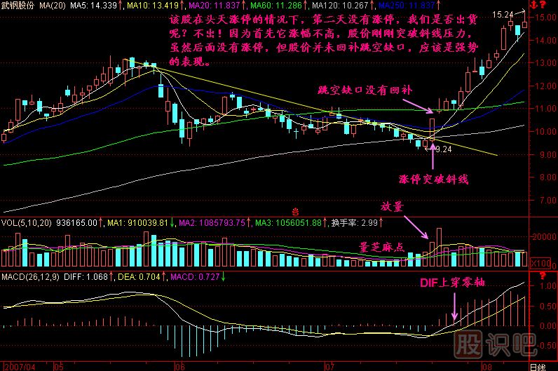 小結(jié):漲停板是多頭氣勢極其強盛的表現(xiàn),一個股票從沒出現(xiàn)過漲停板的話,說明該股的主力太窩囊,也或者力量不夠,甚或就沒有主力。