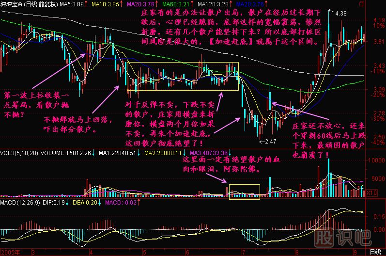 對于深度被套的散戶,這個時候是最恐慌的時候,也是最沒必要恐慌的時候,初跌點你不賣,下跌中繼你不賣,接近底部的最后加速趕底你來賣了,以后可得看明白了,不要再上莊家的當(dāng)!