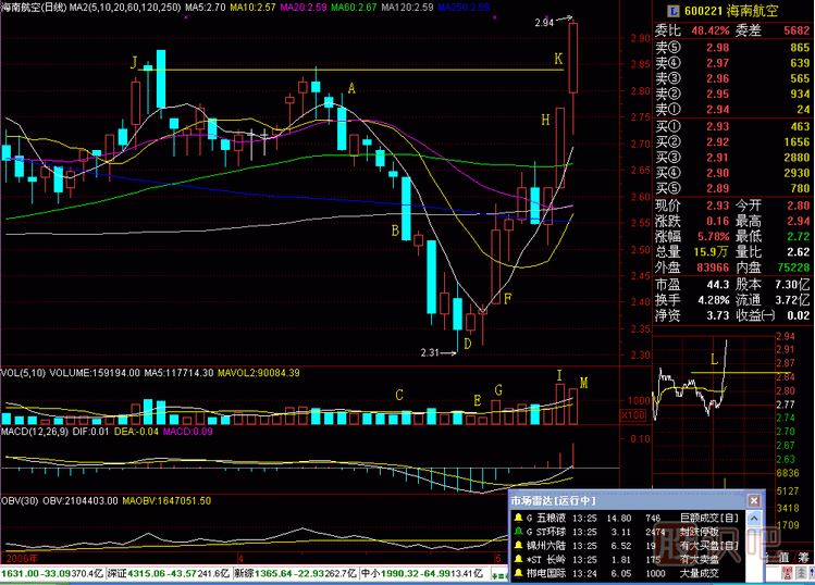 挖坑掏坑圖267-1600221海南航空從(圖267-1)的J點橫向盤整到A點,運行在2+3區(qū)間,60日、120日和250日平均線有形成年托的趨勢,這種走勢在目...