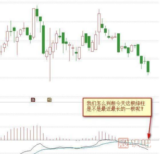 當價格下跌,MACD綠柱逐步放大,當綠柱出現(xiàn)最高點時買進。問題是我們該如何判斷當日MAD綠柱是不是最長的那一根呢?因為綠柱的數(shù)量是不固定的,是可以一直連續(xù)的放大的。