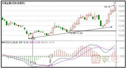 5、MACD第一次在0軸線之下金叉,股指,股價會有一定的漲幅,第二次在0軸線以上二次金叉,股指,股價漲幅會比前一次更大。