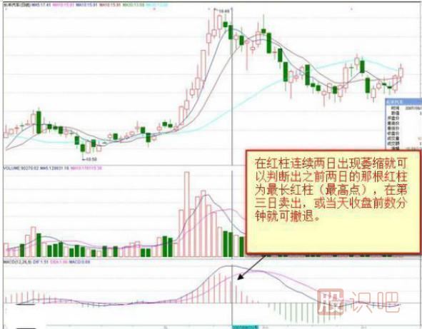 MACD指標在大眾化使用中,一般大家都是在MACD紅柱縮小到翻綠時賣出,這種操作法很多時候往往不能賣在一個相對高位。如果使用以上方法,則可賣到更高的價格。