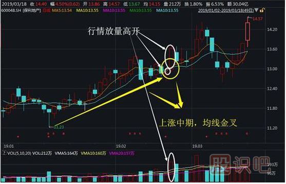 保利地產(chǎn)在經(jīng)歷19年1月15日低點上漲15%左右以后,股價在13元附近面臨調(diào)整,在2月25日盤面出現(xiàn)5日及10日均線金叉并放量高開,股價啟動二次上漲。