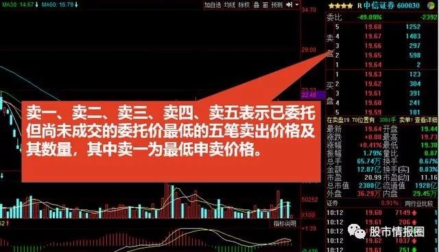 賣一、賣二、賣三、賣四、賣五表達(dá)已受托但并未交易量的受托價(jià)最少的五筆售出價(jià)錢以及總數(shù),列舉賣一為最少申賣價(jià)錢。