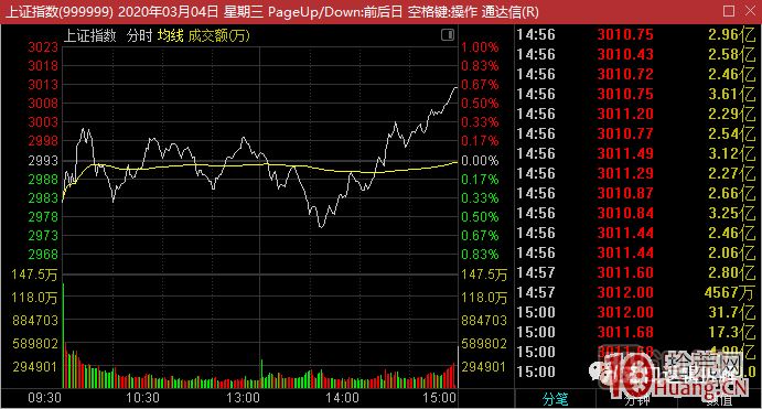 白色曲線:大盤加權(quán)指數(shù),平時聽到的上證指數(shù)取的就是白線的漲跌值。
