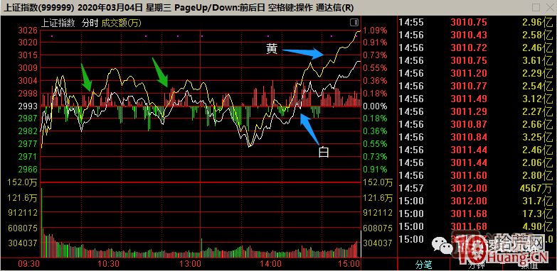 超短高手如何處理大盤領(lǐng)先圖的設(shè)置:大盤指數(shù)分時圖上的黃線、白線,是什么