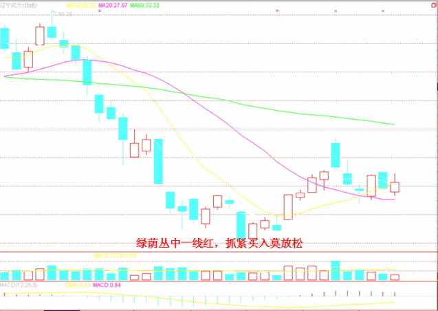 內(nèi)參口訣十一:綠蔭叢中一線紅,抓緊買入莫放松。