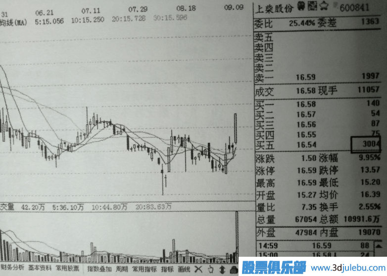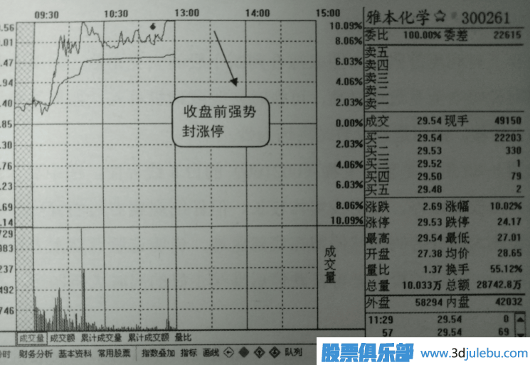 如圖2所示是該股價當(dāng)天收盤時的k線界面,圖中顯示該股當(dāng)天幾乎以漲停價收盤,可見上述掛單方式的有效性。