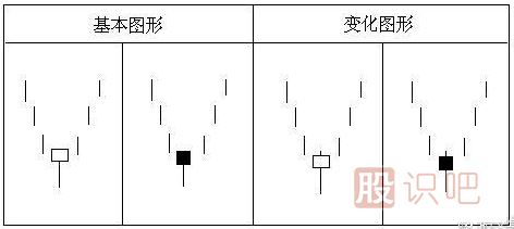 對于倒錘線,當(dāng)市場以跳空向下開盤時,已經(jīng)有了下降趨勢。當(dāng)天的上沖失敗,市場以較低的價位收盤。這種形態(tài)決定趨勢反轉(zhuǎn)是成功還是失敗,第二天的開盤是判斷的標(biāo)準(zhǔn)。如果第二天的開盤高于倒錘線實(shí)體,潛在的趨勢反轉(zhuǎn)將引起空頭的恐慌,這將支持股價進(jìn)一步上揚(yáng)。