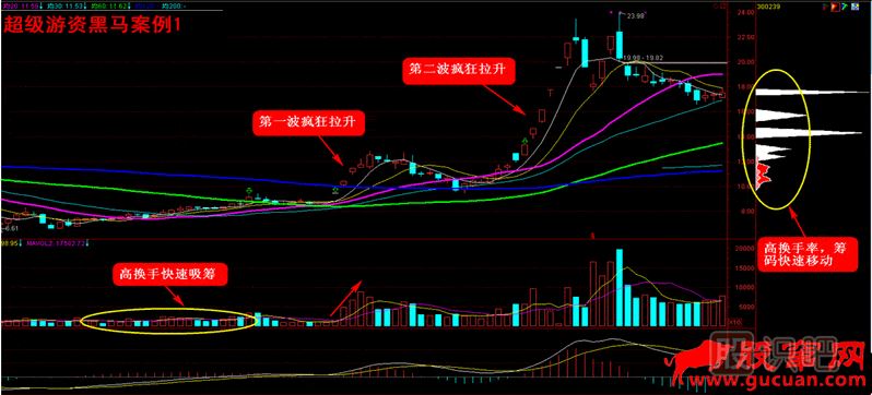 ①滿足游資黑馬的前四大特征,確認是游資炒作黑馬形態(tài)。