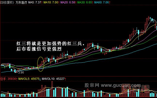 4.紅三兵會(huì)出現(xiàn)“紅三將、小逃兵、叛變兵”三種變異,分別代表著不同的技術(shù)含義,投資者要認(rèn)真區(qū)分。