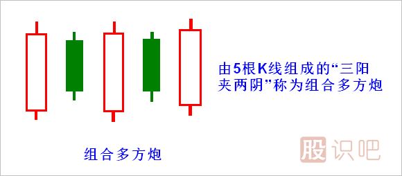 1.多方炮一般是“兩陽夾一陰”的K線組合,也可以變異為“三陽夾兩陰”。
