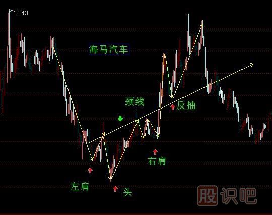 1)找到頸線是頭肩底的重要的一個(gè)環(huán)節(jié),因?yàn)樗械男螒B(tài)都是滯后的,找到了頸線的話等趨勢(shì)完全出來(lái)之后你在反抽的位置完全可以介入。