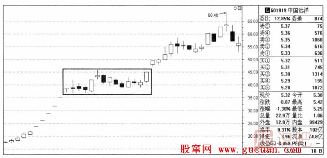 如圖是2007年中國(guó)遠(yuǎn)洋走勢(shì)圖,在圖中我們可以看到,中國(guó)遠(yuǎn)洋在經(jīng)過一輪大漲之后,橫盤休整做了矩形整理,之后又出現(xiàn)了新一輪拉升,最終從20元左右一直上漲至最高64元。