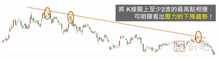 在 K線圖上,將「至少 2波的最高點(diǎn)」相連,
