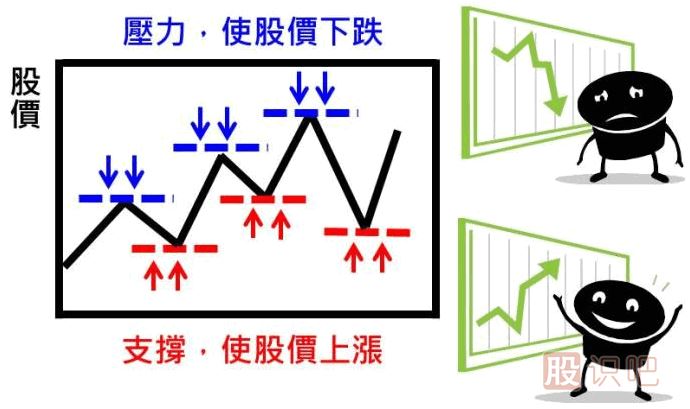 2.壓力:賣方力量強(qiáng),使股價下跌