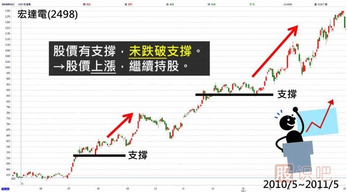 股價谷底或折返低點(diǎn) 有支撐力道,使股價繼續(xù)上漲。