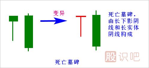 K線形態(tài) - 死亡墓碑【K線形態(tài)組合】第十八節(jié)死亡墓碑一、形態(tài)認識死亡墓碑,由兩根K線組成,第一根為大幅震蕩的高開低走陰線,一般為錘頭線或T字線,...