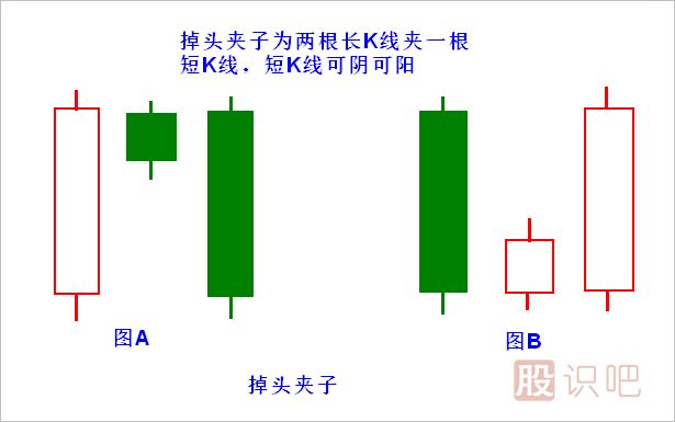 K線形態(tài) - 掉頭夾子【K線形態(tài)組合】第十九節(jié)掉頭夾子一、形態(tài)認識掉頭夾子,由三根K線組成,第一根和第三根K線實體較長,可陰可陽,第二根K線實體較短...