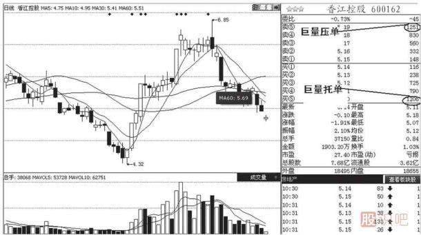 如果巨量托單無法成功地托住股價(jià),那股價(jià)就只能向下跌,此時(shí)的托單只能起到延緩下跌速度的作用,一筆托單托不住股價(jià)的時(shí)候,在下跌的途中往往還會(huì)有多筆托單出現(xiàn),只有當(dāng)托單可以有效地頂住拋盤的壓力時(shí),股價(jià)才可以停止下跌轉(zhuǎn)為上漲。