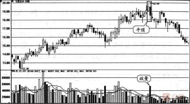 平頂是指在股價(jià)出現(xiàn)持續(xù)上升后,第二天K線形成的最高價(jià)與前一天K線的最高價(jià)相同或相近,這種K線組合稱為“平頂”,如圖1-35所示。接下來由股識(shí)吧來總結(jié)多根K線平頂賣出,趕緊一睹為快。