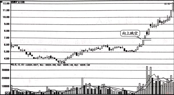 (2)股價向上跳空的成交量是呈現(xiàn)出逐步放量或者是溫和放量的現(xiàn)象。