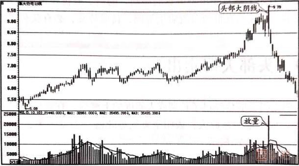 單根K線頭部大陰線賣出: