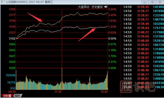 看到了嗎,圖中箭頭所指的黃色曲線和白色曲線就是大盤的分時價格走勢。細心的投資者,會發(fā)現(xiàn),為什么同一個大盤指數(shù)點位,為什么會由2條曲線表示?到底哪條價格曲線才是大盤真正的指數(shù)點位呢?