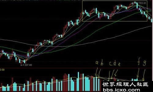 1、在上升通道中成交量總是當(dāng)股價(jià)觸及通道頂?shù)臅r(shí)候,而一旦股價(jià)回落到通道底附近,成交量明顯萎縮。