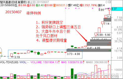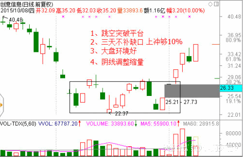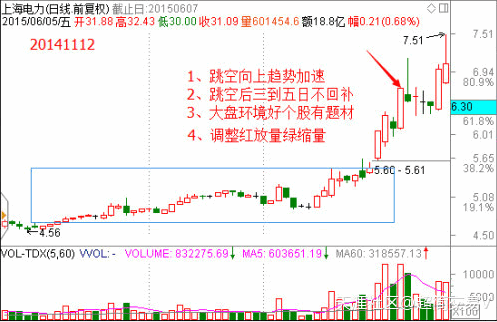1、必須盤整突破或者上升加速的跳空缺口,缺口越大越好。